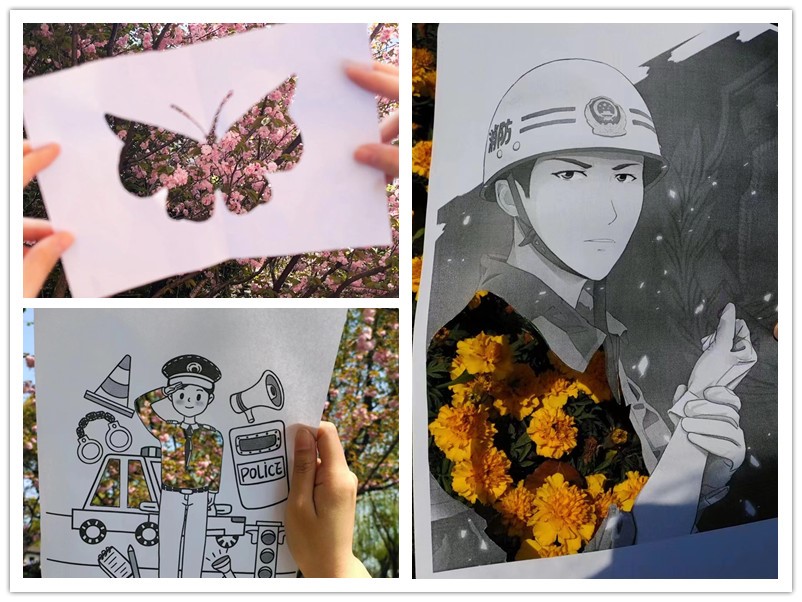 同学们用手中的美工刀勾勒出各种形状,有的将争奇斗艳的花朵变成耀眼夺目的裙子穿在女孩身上,有的用绿树辉映青春活力的少年,还有的同学用灵活双手把广为人知的卡通形象与春景融合,碰撞出别样乐趣。生活中常见的物品在同学们的奇思妙想下,也被赋予了新的生命力。