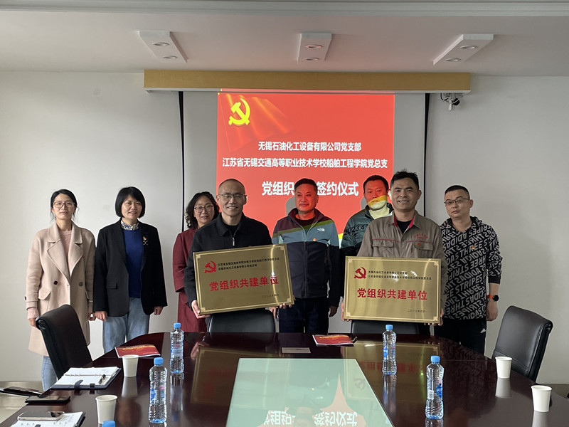 为充分发挥党建引领作用,探索学校党建工作与企业党建合作共建的新思路、新方法,进一步深化校企合作、产教融合。4月7日下午,船舶工程学院党总支与无锡市石油化工设备有限公司党支部在无锡石化公司会议室举行了党组织共建协议签订仪式。学校党委副书记、五级职员朱雨兰、无锡市石油化工设备有限公司副总经理王晨秋、党支部书记柳博,船舶工程学院院长吴志亚、党总支书记赵斌等参加活动。