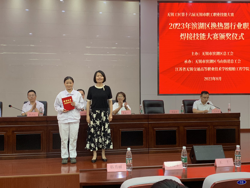 8月17日,由无锡市滨湖区总工会、无锡市滨湖区马山街道总工会联合举办,学校承办的2023年滨湖区换热器行业职工焊接技能大赛颁奖仪式在马山街道报告厅举行。无锡市总工会劳动和经济工作部部长刘国伟、滨湖区总工会党组书记、副主席曹洪达、滨湖区总工会副主席彭光耀、度假区党群工作部部长高祥生、开云手机客户端党委副书记、五级职员朱雨兰、马山先进制造业基地党委书记张文伟出席本次颁奖仪式。滨湖区总工会相关科室,开云手机客户端船舶工程学院相关负责人,马山先进制造业基地分管负责人和换热器企业工会负责人,以及所有参赛选手参加活动。颁奖仪式由度假区党群工作部副部长、马山街道总工会主席吴军涛主持。