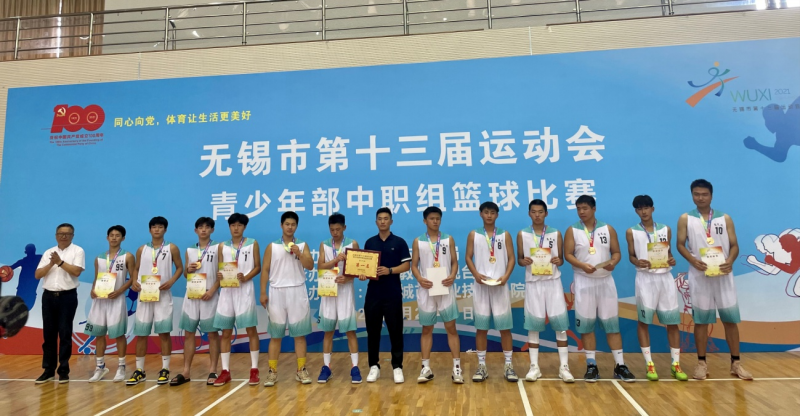2021年无锡市第十三届运动会中职组篮球赛于6月27-30日在无锡城市职业技术学院体育馆火热开战。本届比赛由无锡市教育局主办,无锡教育电视台承办,决赛场比赛实现互联网和手机平台直播,备受场内外关注。学校副校长耿兴华亲临决赛现场,并向所有教练员、运动员祝贺、致谢。