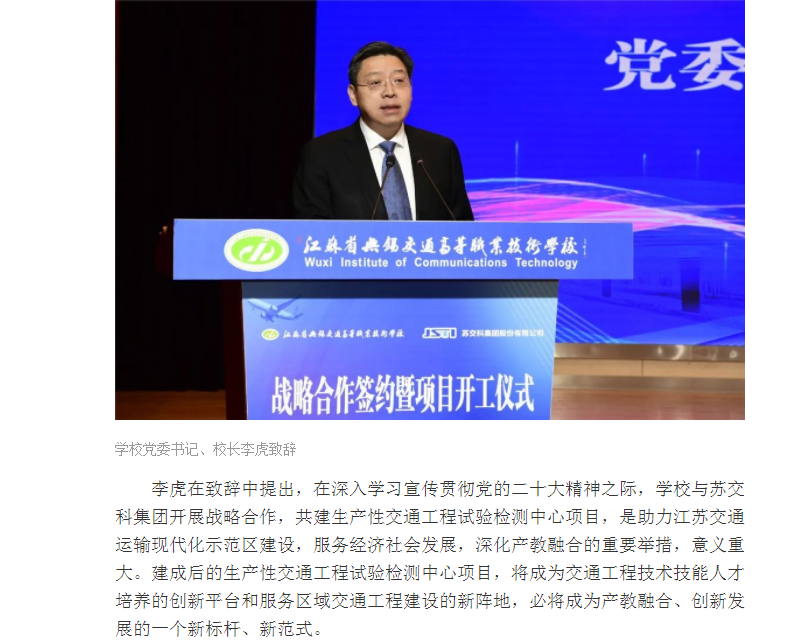 无锡博报:无锡交校与苏交科集团共建生产性交通工程试验检测中心项目正式启动(视频版)