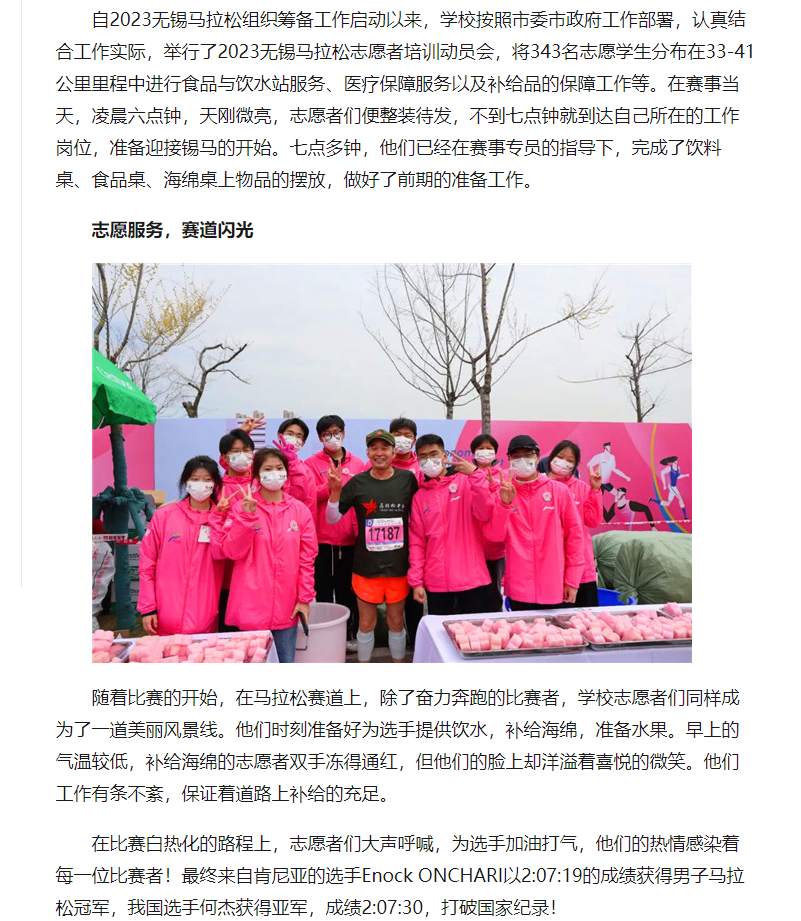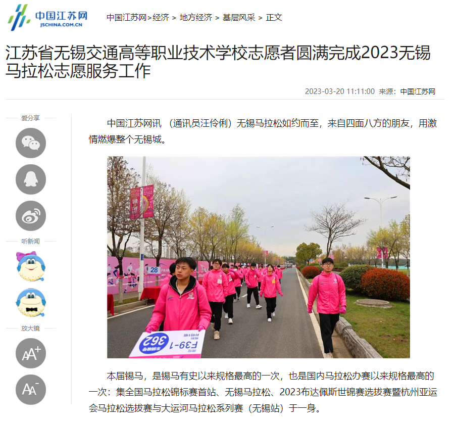 中国江苏网:开云手机客户端志愿者圆满完成2023无锡马拉松志愿服务工作