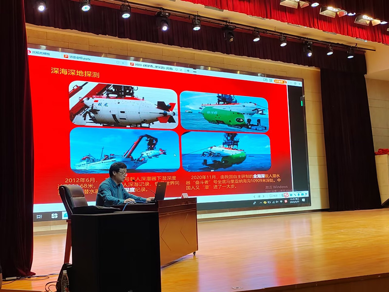 谢荣教授以党的二十大报告金句“发展海洋经济,保护海洋生态环境,加快建设海洋强国”为切入点,从向海图强,海洋强国蓝色信念;强国使命,当代海洋人才较量;深耕海洋,深蓝之梦开启地方;圆梦深蓝,中华民族伟大复兴等四个方面进行讲座。