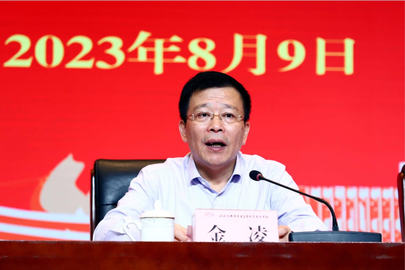 金凌副厅长在讲话中对李虎同志担任校长、党委书记期间,校领导班子建设和办学治校取得的成绩给予了充分肯定,对邢勇同志担任学校副校长、纪委书记期间为学校发展作出的贡献给予了高度的评价,对李进同志的基本情况作了介绍。他指出,厅党组任命李进同志担任学校校长、党委书记是立足学校改革发展需要和领导班子建设实际,经过综合考虑、充分酝酿、慎重研究作出的决定,并就进一步加强学校建设,对新一届校领导班子提出了三点要求:一是坚持以党的政治建设为统领,着力加强党对学校工作的全面领导;二是坚持以内涵发展为抓手,着力推进学校重点工作落实落细;三是加强领导班子和干部人才队伍建设。