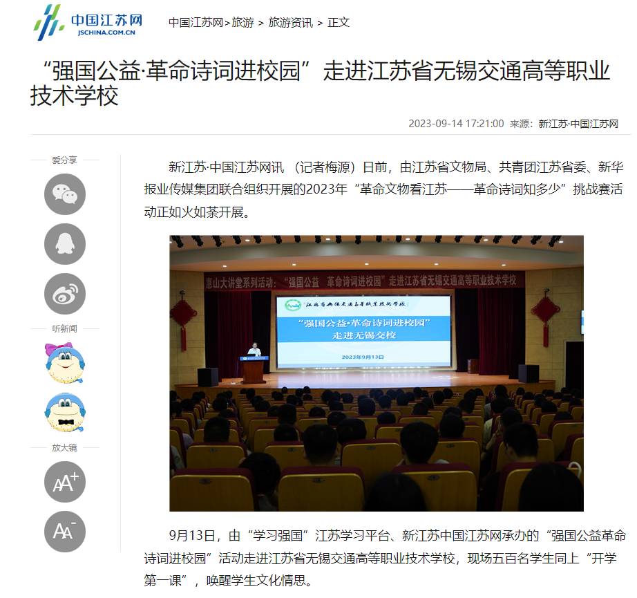 新江苏:“强国公益·革命诗词进校园”走进开云手机客户端