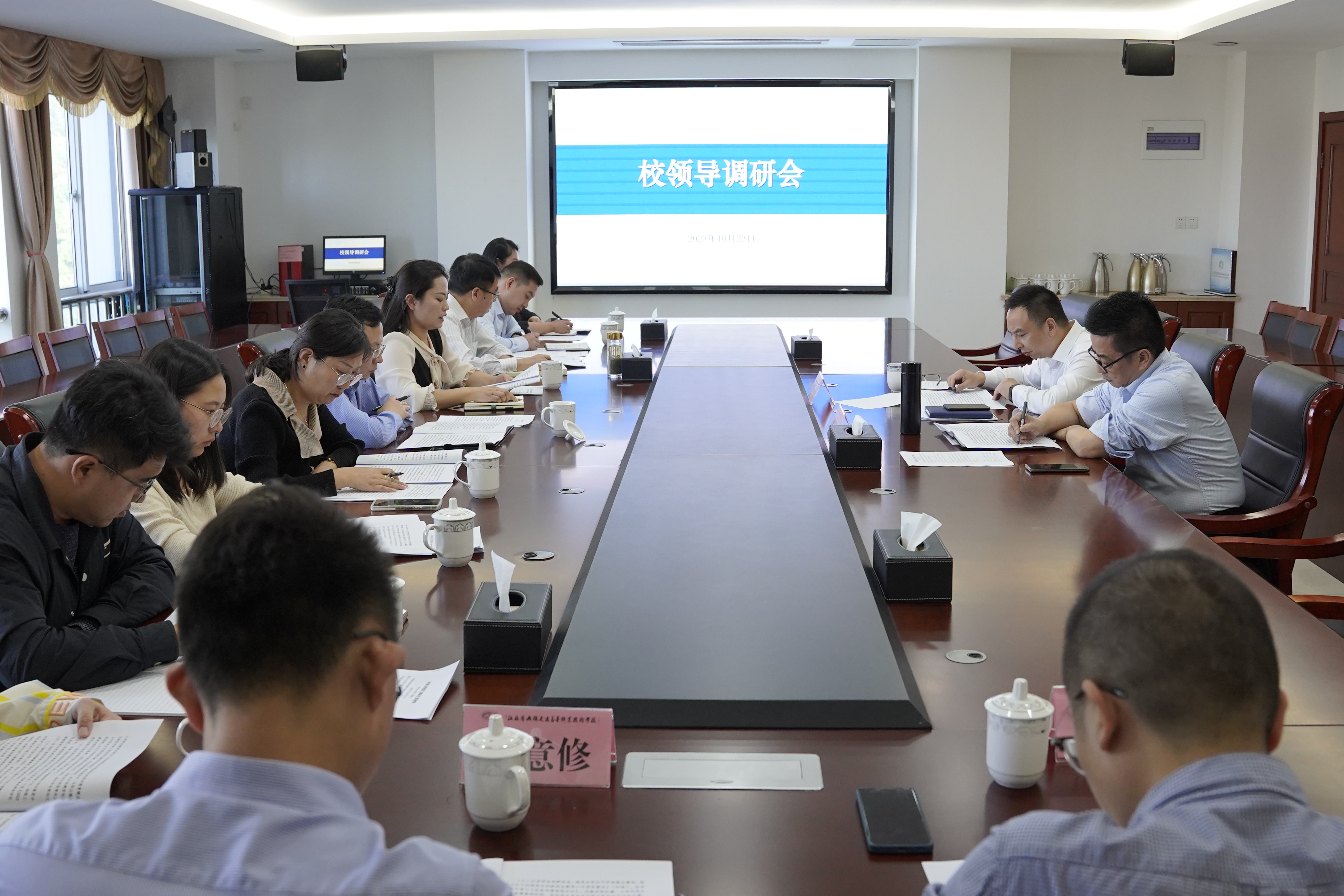 党政办公室组织人事处等职能部门负责人陪同调研,学生工作处、招生就业处全体工作人员参加会议