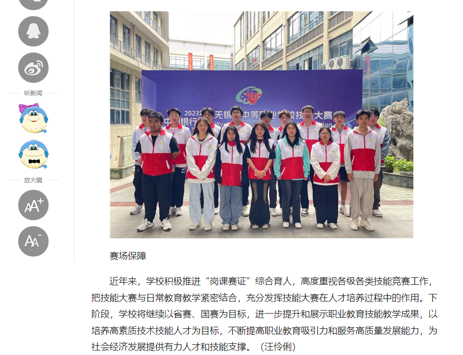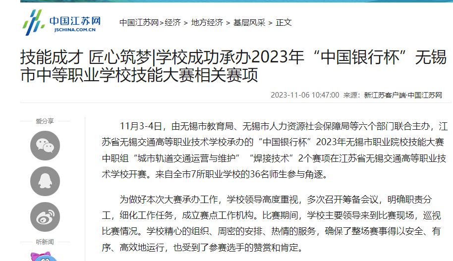 中江网:技能成才 匠心筑梦|学校成功承办2023年“中国银行杯”无锡市中等职业学校技能大赛相关赛项