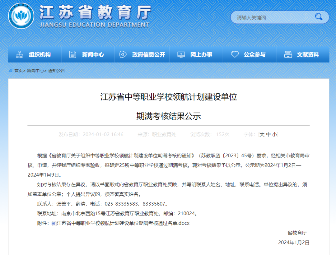 根据《省教育厅关于组织中等职业学校领航计划建设单位期满考核的通知》要求,经各市教育局审核、省教育厅专家验收,学校高质量通过领航计划建设单位期满考核。