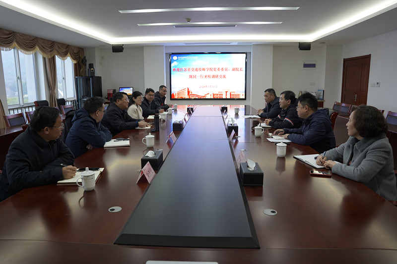 3月14日,江苏省交通技师学院党委委员、副院长陈同带队来校调研,学校副校长范次猛参加调研交流。后勤管理处、图文信息中心、工会等相关职能负责人参加座谈会。