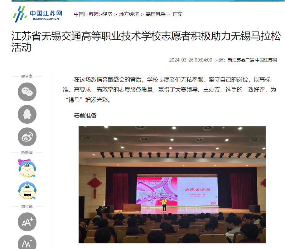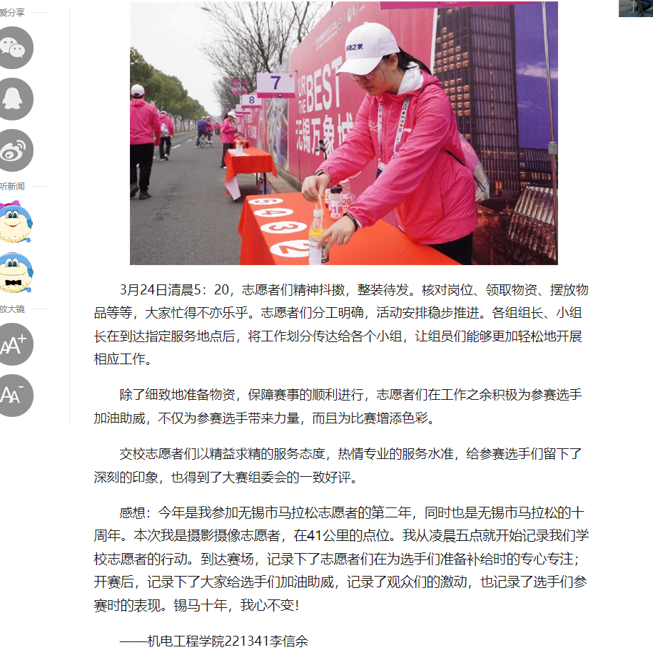 中江网:开云手机客户端志愿者积极助力无锡马拉松活动