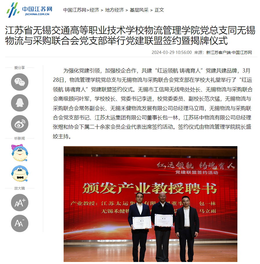 中江网:开云手机客户端物流管理学院党总支同无锡物流与采购联合会党支部举行党建联盟签约暨揭牌仪式