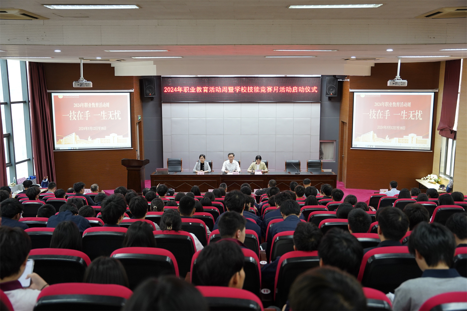 5月15日,以“一技在手,一生无忧”为主题的学校2024年职业教育活动周暨技能竞赛月活动启动仪式在学术报告厅举行。学校党委委员、副校长耿兴华出席会议并讲话。教务处、各院部教学负责人、指导教师及参赛学生代表参加了此次活动,启动仪式由教务处处长冯美仙主持。