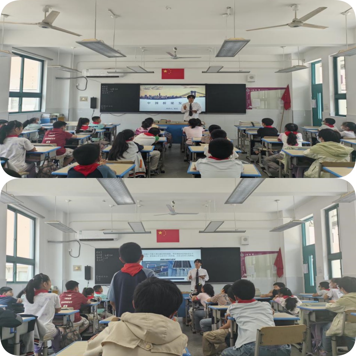 活动当天,张昊同学以饱满的热情和专业的知识储备,为梅园小学的同学们带来了一场精彩纷呈的科普讲座。他通过生动的图片、简洁易懂的语言,向小学生们介绍了桥梁的基本结构、功能以及分类,并详细讲解了不同类型桥梁的特点和建造原理。