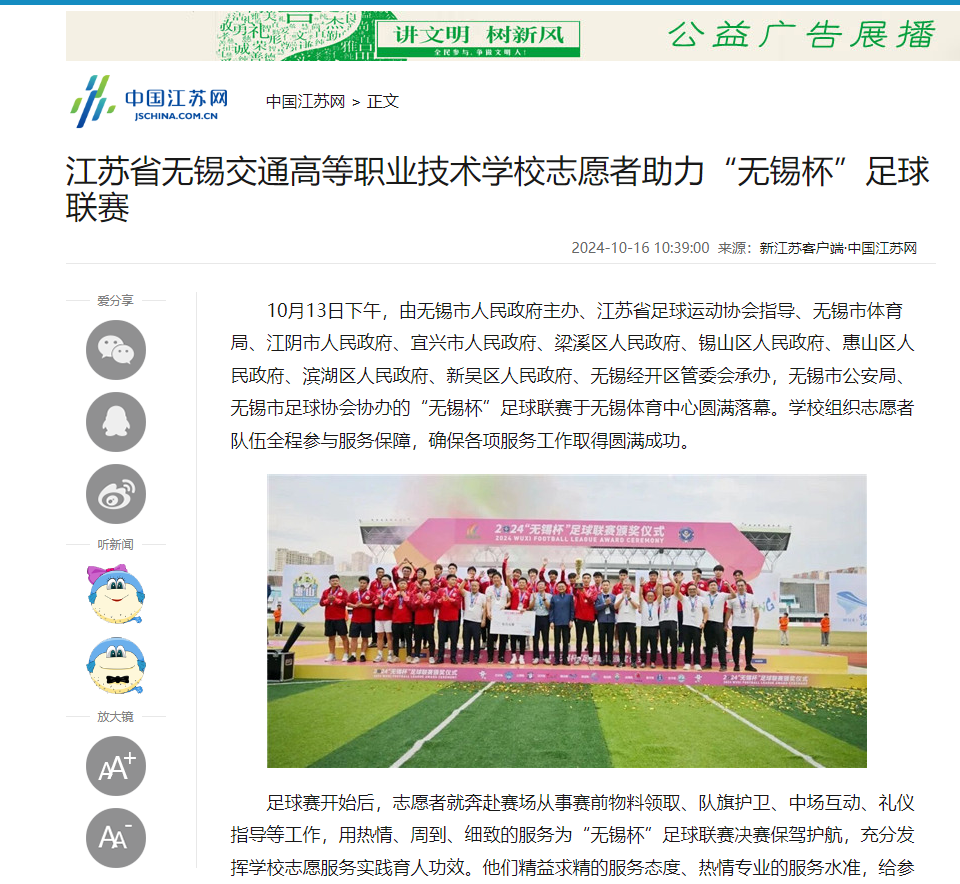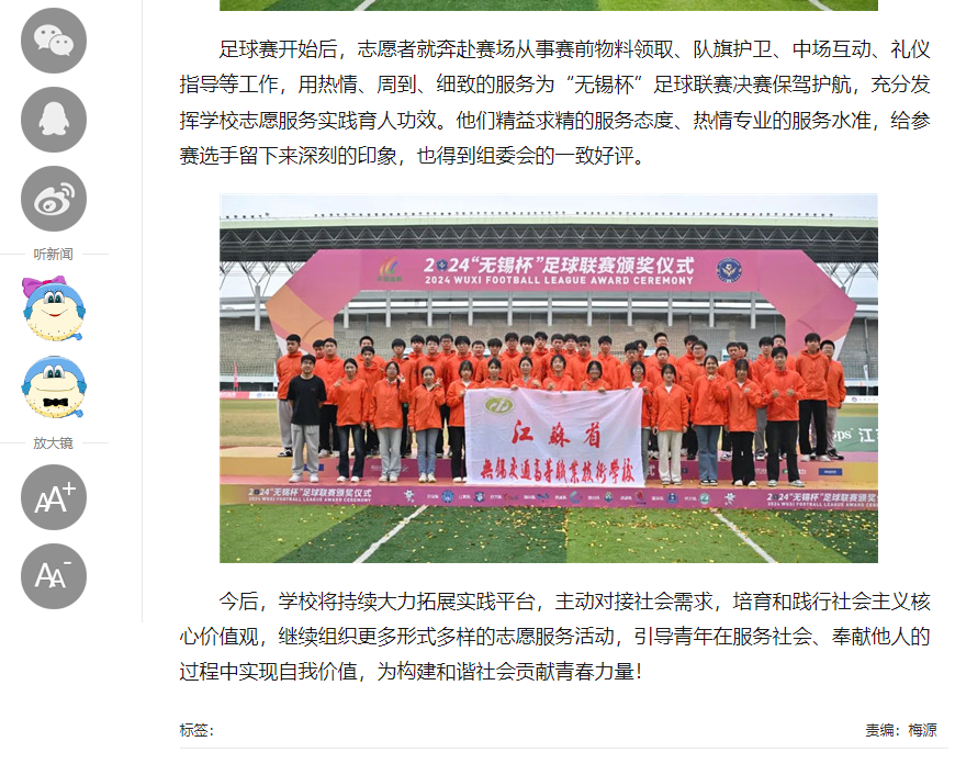 中江网:开云手机客户端志愿者助力“无锡杯”足球联赛