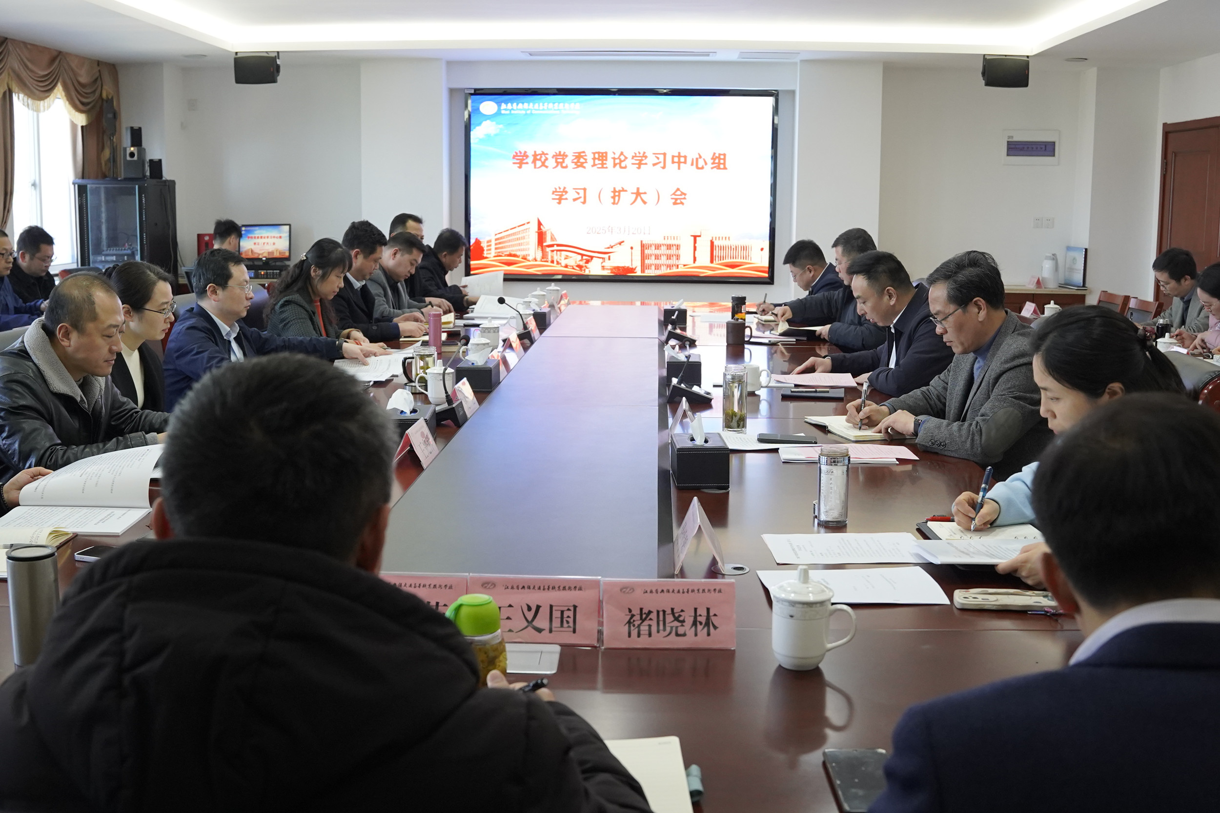 3月20日,学校召开党委理论学习中心组(扩大)学习会,专题学习全国两会精神。学校党委书记、校长李进主持会议并讲话,学校党委理论学习中心组成员、各处室、院部党政主要负责人等参加学习。
