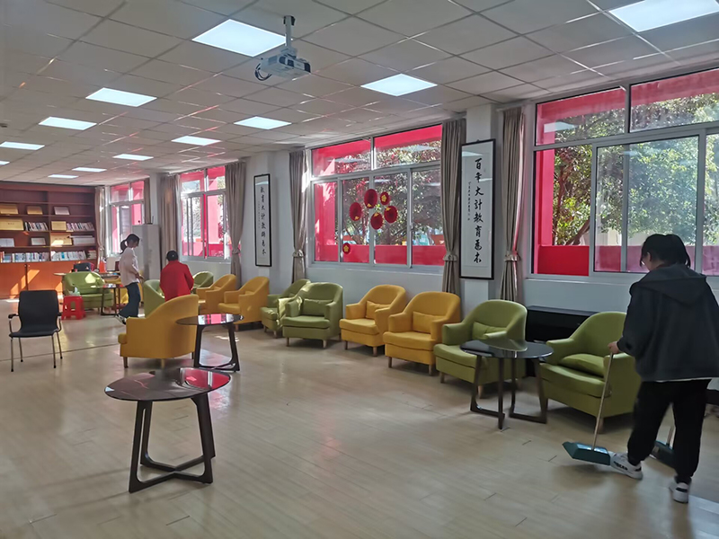 活动中,志愿者们分别拿着扫帚、拖把、垃圾框等卫生工具,到学校健身房、教工之家等区域打扫卫生。大家以劳动为荣,有的用扫帚清扫、有的整理桌椅、有的擦运动器械、有的拖地,用实际行动践行雷锋精神。经过一个多小时的努力,大家打扫的区域、卫生死角纷纷旧貌换新颜。