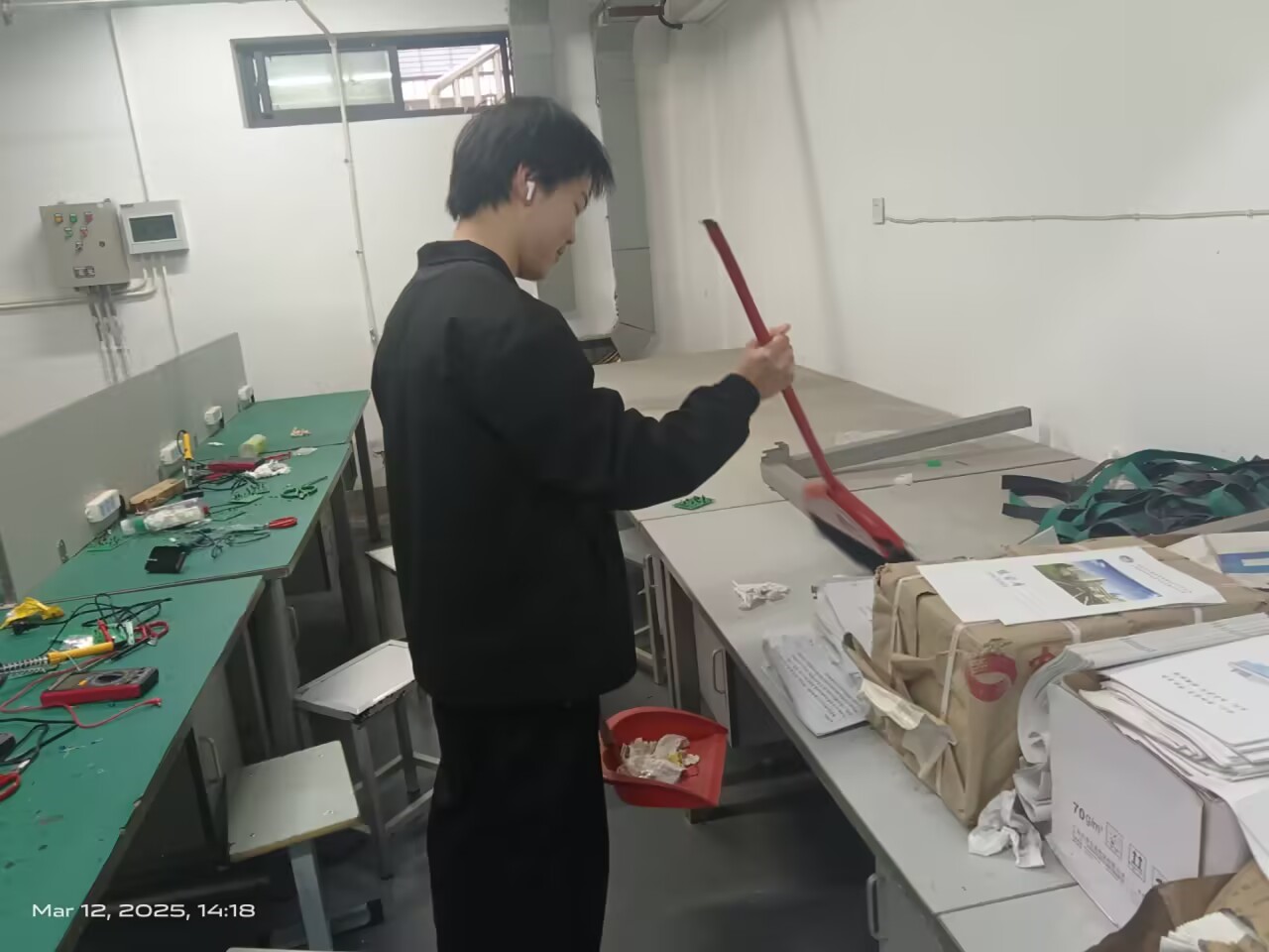 活动期间,同学们分工协作,手持扫帚、抹布等工具,对车间设备、地面、门窗及卫生死角进行全面清洁,大家互帮互助,整理工具台、清运垃圾,充分展现团结奉献精神。经过两小时劳动,车间焕然一新。