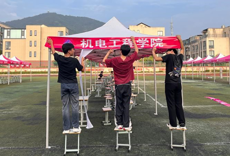 布置过程中,助班们分工协作,有的搭建展台,有的张贴标识,有的摆放座椅,有的整理现场卫生,每一个细节都力求做到最好。经过近三个小时的忙碌,新生报到现场布置完毕,整洁有序、充满活力的环境,不仅为第二天的报到工作做好了场地准备,也让校园充满了迎接新生的喜悦氛围。