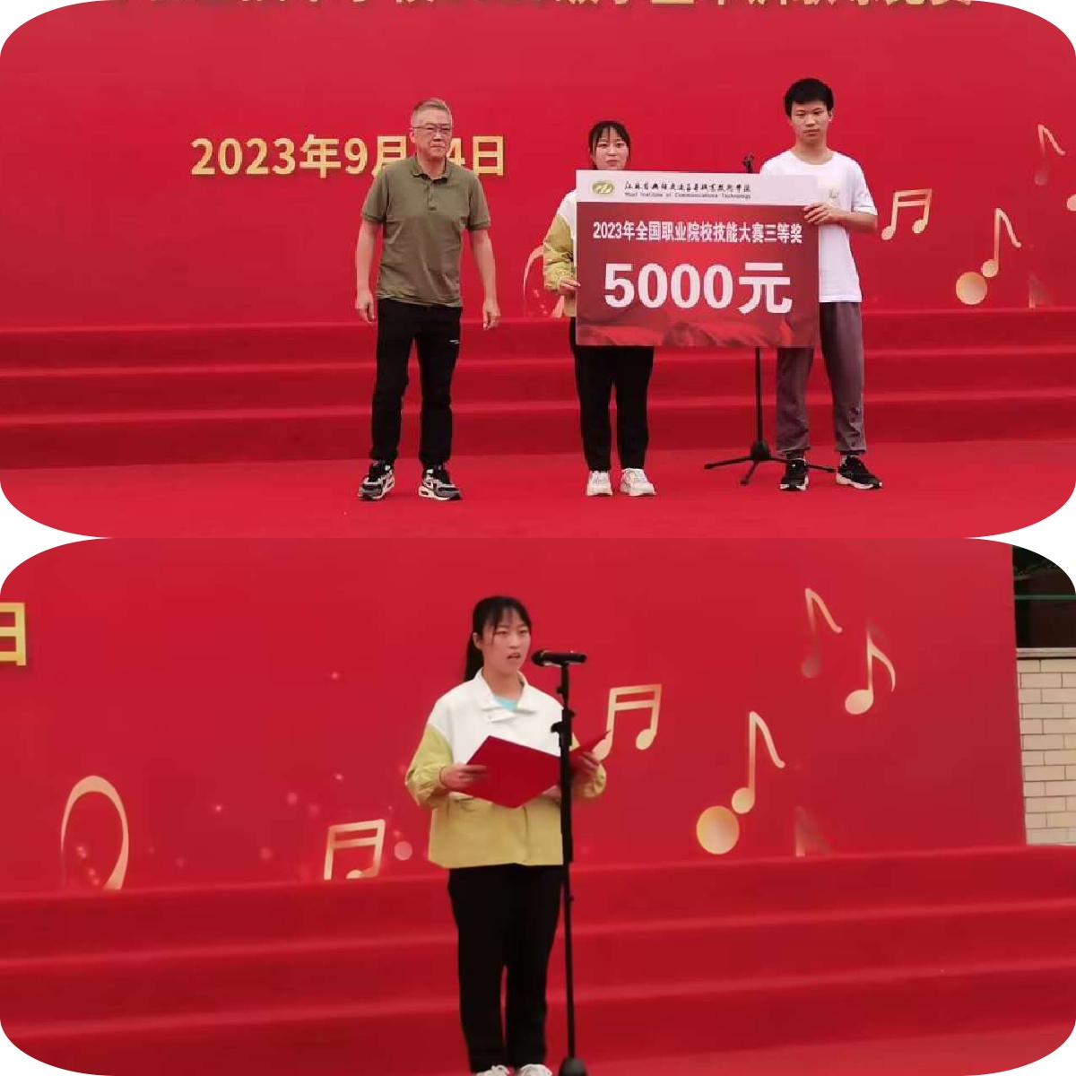 学院领导为获得联院、无锡市三好学生、全国职业院校技能大赛城轨赛项三等奖的同学颁发了奖金和荣誉证书。