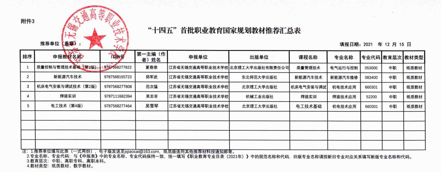 根据《省教育厅关于开展“十四五”首批职业教育国家规划教材申报推荐工作的通知》学校拟推荐以下五本教材,现予以公示。