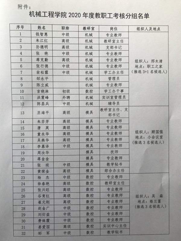 机械工程学院2020年度考核民主测评暨教职工会议通知