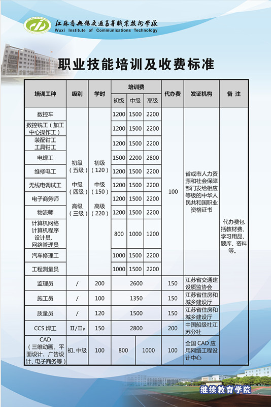江苏省职业(工种)技能鉴定收费分类标准(试行)