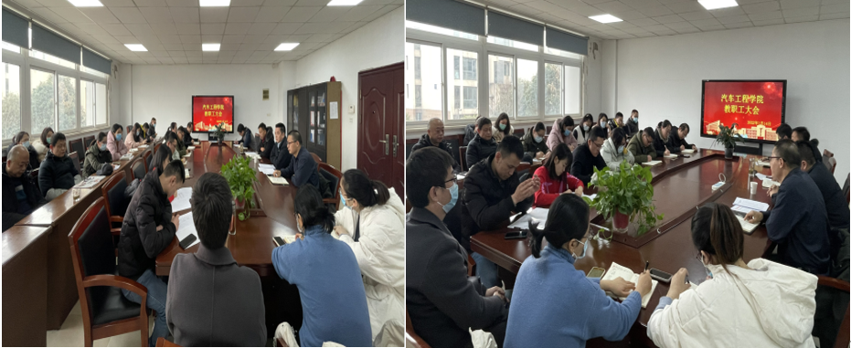 为了及时总结本年度学院各项工作,保证学院教育教学工作更加扎实有序地开展,2022年1月14日汽车工程学院在会议室召开了期末年尾教职工大会。学校党委委员、副校长倪依纯与会指导,会议由学院副院长金传琦主持。