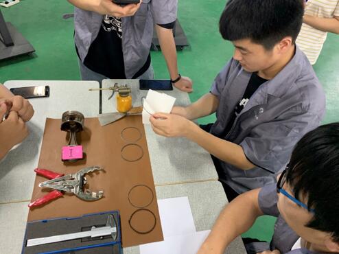 在课堂上,王盈盈老师运用多媒体、视频、投屏、超星学习通等多种信息化手段,通过理实一体,为同学讲解活塞环的拆装与检修。课堂教学井然有序,教学过程完整,讲解节奏流畅,师生配合默契。课后,王盈盈老师针对此次课堂教学过程中的优点和缺点,与听课教师进行了沟通交流,听取了老教师宝贵的意见和建议,为今后的教学工作夯实基础。
