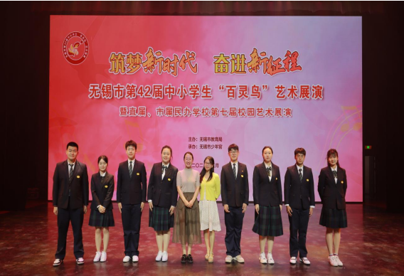 草树知春不久归,百般红紫斗芳菲。5月16日,无锡市第42届中小学生“百灵鸟”艺术展演暨直属、市属民办学校第七届校园艺术展演在无锡市少年宫举行。学校选送的朗诵作品《请党放心 强国有我》,在全市各级各类学校选送的作品中脱颖而出,获得综合专场金奖。