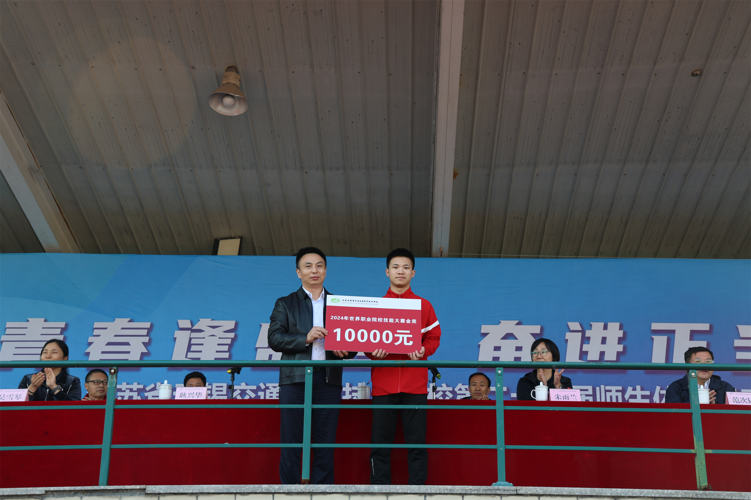 李进指出,本届运动会是在全校师生认真学习贯彻党的二十大和二十届三中全会精神的热潮中,在学校各部门的共同努力下进行的。近年来,学校坚持三全育人、五育并举,近阶段我校国家级成果捷报频传,我校学生陈玺、浦豪文同学在2024年世界职业院校技能大赛总决赛争夺赛中斩获金奖,我校冯美仙老师课程入选教育部2023年职业院校国家在线精品课程。这是全校教育教学成果的体现,更是全体师生精气神的生动诠释。