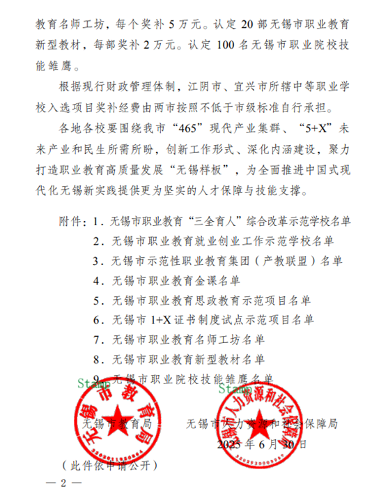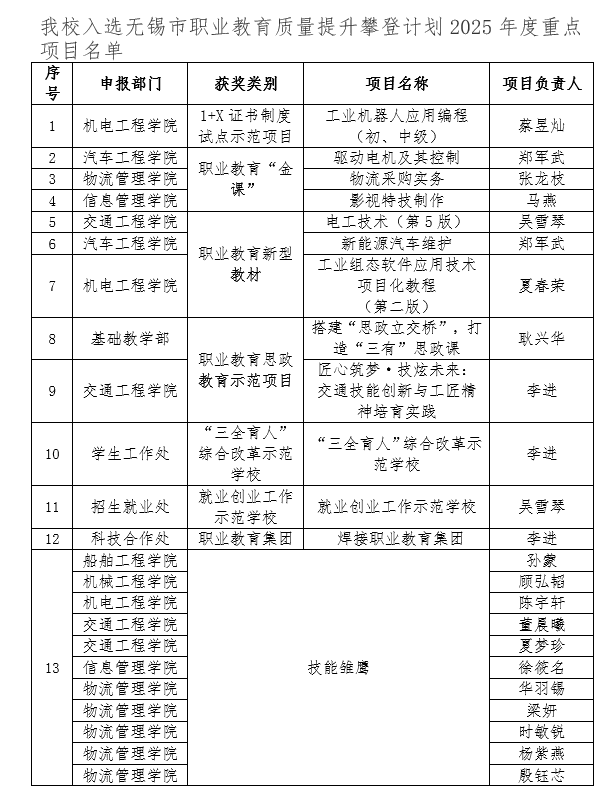 喜报:我校多个项目入选无锡市职业教育质量提升攀登计划2025年度重点项目