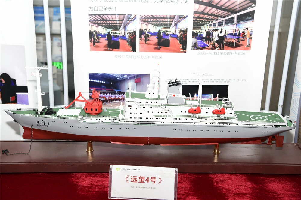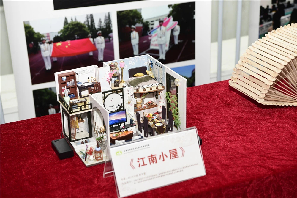 此次手工作品展种类繁多,美轮美奂。每个展区里,展台上一份份精致小巧,精雕细琢的作品皆赢得广大师生的驻足观赏、评鉴。有出自首届校园手工制作大赛的优秀作品《羊毛毡》、《苏州园林》、《江南小屋》、《盒子剧场》,也有学生社团刻纸社的《连年有鱼》、《金狗纳福》,拙巧手工坊的《九霄云鹤头饰》、《玫瑰刺绣》,绿苑文学社的《蓝晒作品》、《扎染作品》,船模社的《青岛舰》、《远望4号》等近百幅作品每件作品都独具匠心、构思巧妙,参观的师生对各式各样的造型和惟妙惟肖的作品无不啧啧称赞。