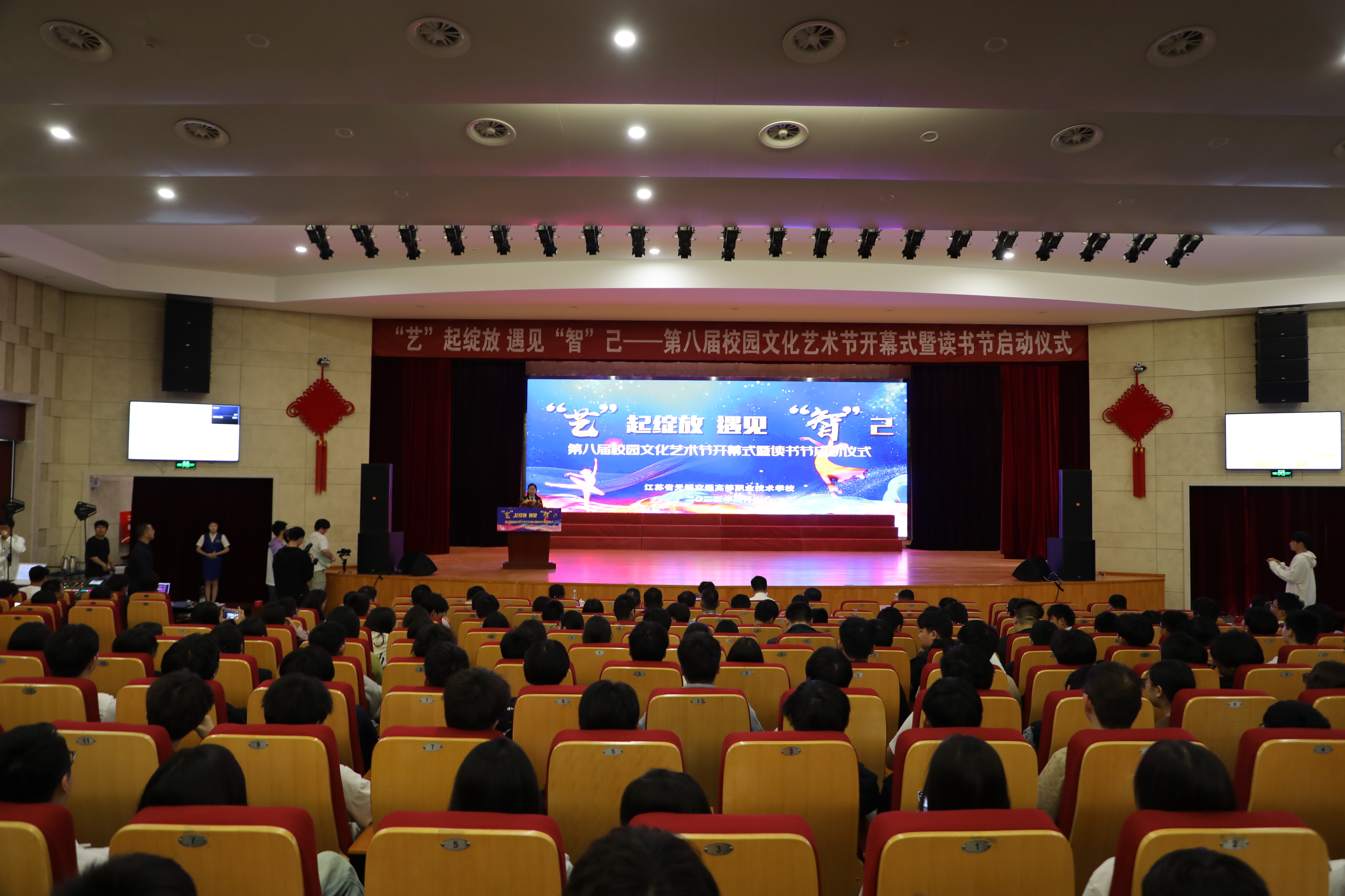 最美人间四月天,书香满园艺飞扬。4月23日,学校第八届校园文化艺术节开幕式暨读书节启动仪式在励志楼大礼堂隆重举行。图书馆作为学校文化传承与知识传播的重要阵地,深度参与了此次活动的筹备与组织工作,与团委学工等部门携手共进,为全校师生呈现了一场文化艺术与阅读书香交相辉映的盛宴。校领导、各处室院部负责人、教师代表及学生代表齐聚一堂,共享文化盛典。活动由学校副校长吴雪琴主持。
