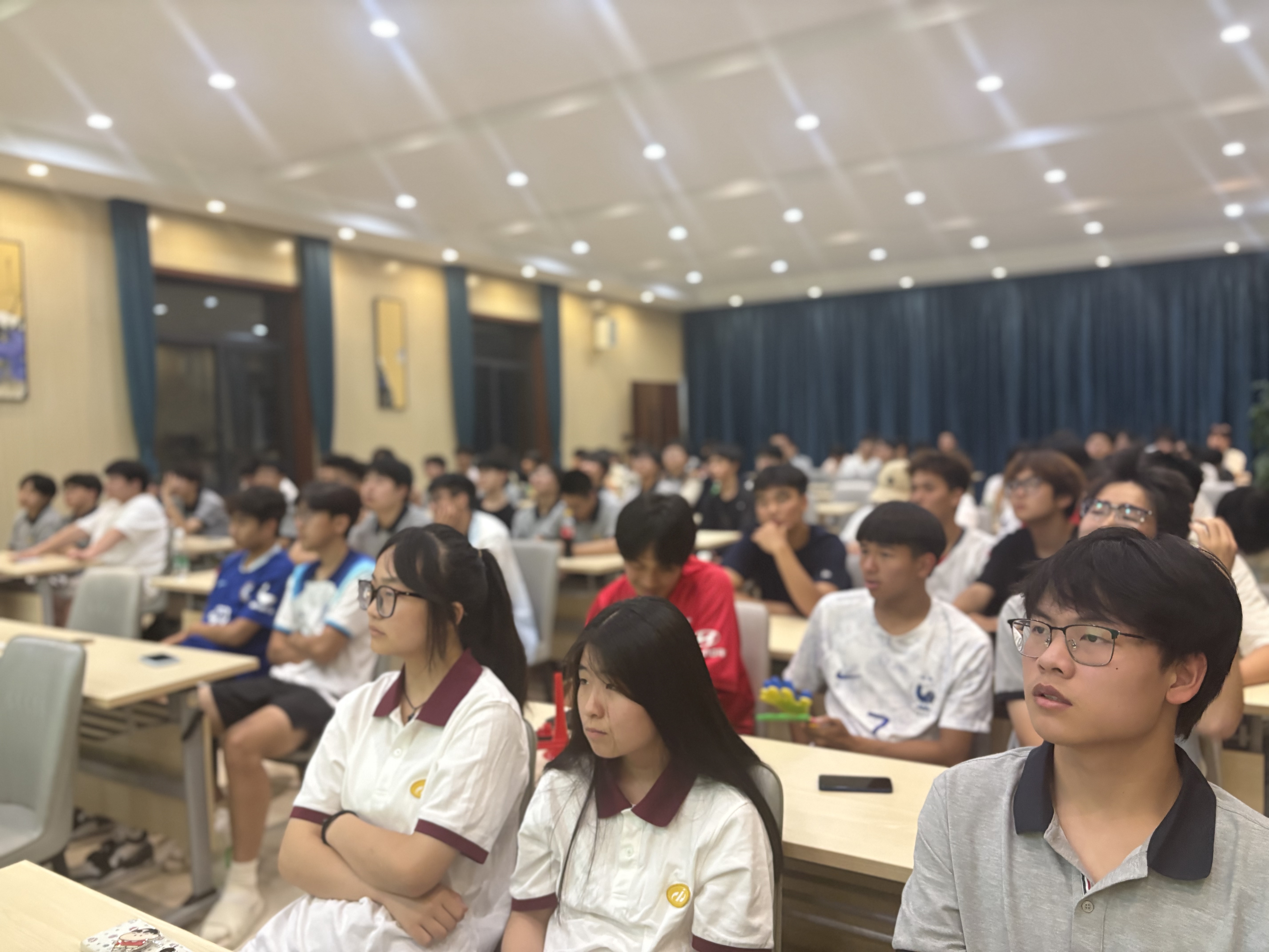 2025年6月15日 19:30,江苏省城市足球联赛 “苏超” 第四轮无锡对阵常州的焦点战,在江阴市体育中心体育场燃情开赛。我校精心组织线上观赛活动,百余位师生齐聚百灵鸟食堂二楼教工餐厅,通过高清直播大屏共赴这场足球盛宴,现场气氛热烈非凡。
