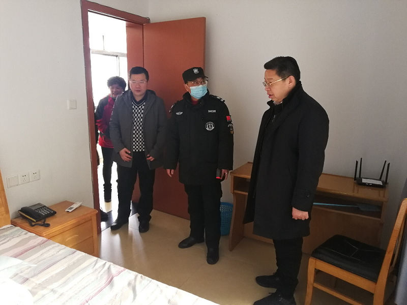 在慰问工作中,首先李虎书记代表校领导班子给担负寒假校园值守的值班老师和保安人员送上慰问品并详细询问了在岗值守的情况;其次,还走到值班室查看了办公和值班休息室的改造情况,要不断改善校园值班值守场所的工作条件,使值班人员能安心、尽心、全身心的投入校园安全值守工作,确保校园安全稳定。