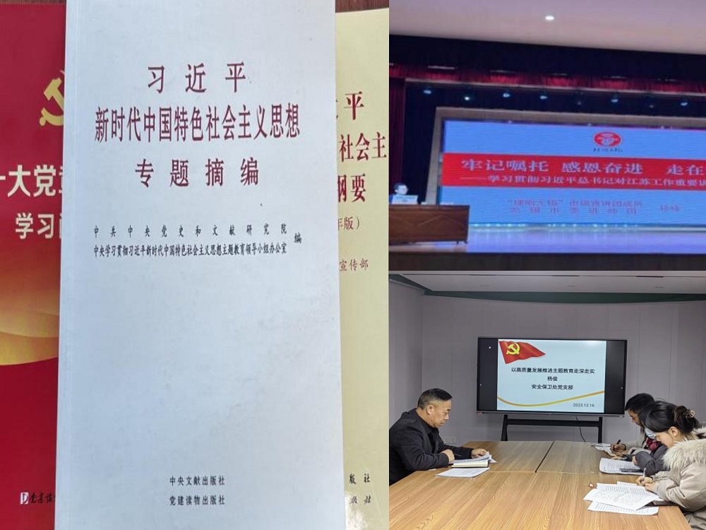 截至12月20日,安全保卫处党支部共有4位党员参与领读、自学,累计开展理论学习与交流研讨8次,全体党员干部重点研读了《二十大党章修正案》《习近平著作选读》《习近平新时代中国特色社会主义思想专题摘编》《习近平新时代中国特色社会主义思想学习纲要》等学习书目,集中学习习近平总书记视察江苏时的重要讲话重要指示,边学习、边对照、边检视、边整改,切实把学思想、强党性的成果运用到履行校园安全管理工作职责上。