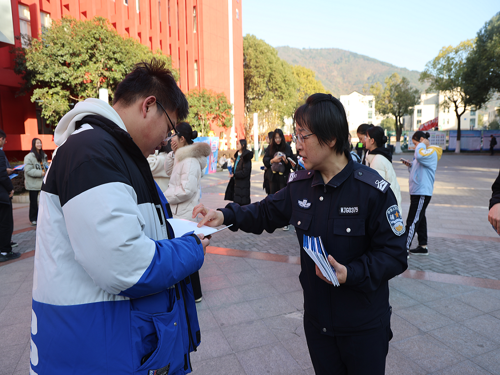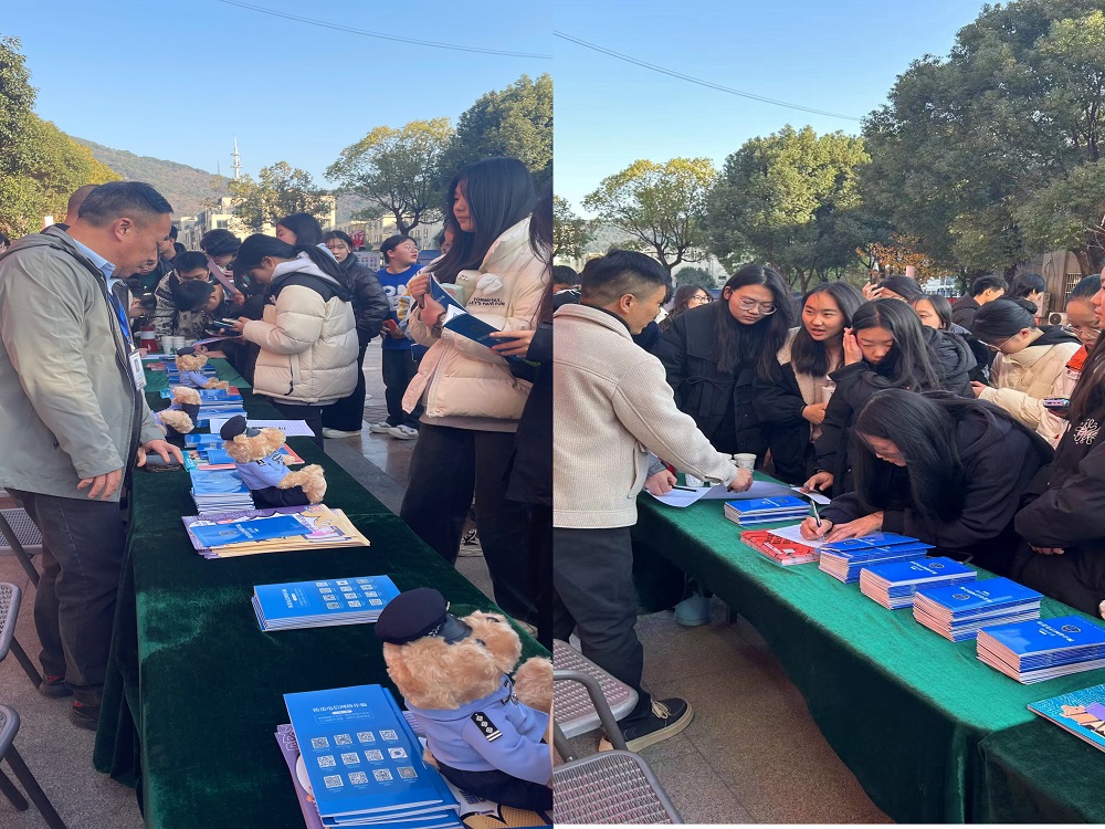为进一步提高校园师生的识诈、防诈、反诈能力,营造和谐的校园环境。12月7日学校安全保卫处联合无锡滨湖区荣巷派出所在北校正德楼广场开展“反诈你我同行,共建平安校园”主题教育宣传活动。