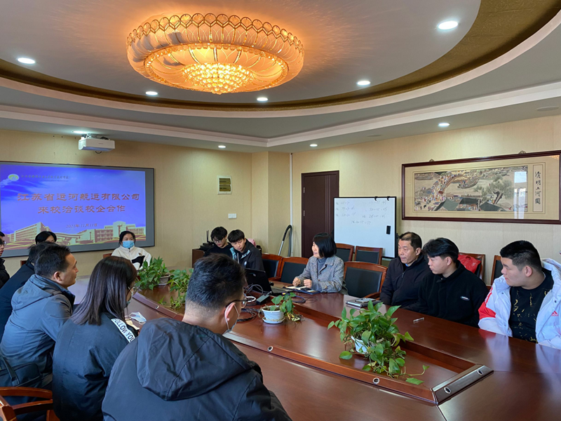 为深化产教融合、校企合作,11月11日,江苏省运河航运有限公司人力资源部尹希栋、陶倩倩、葛洋一行及江苏省运河航运有限公司下属单位淮安市运河船业有限公司总经理朱海荣来校洽谈校企合作。船舶工程学院院长吴志亚、副院长刘方、驾机教研室副主任沈丽兰、船舶驾驶专业192131班班主任夏忠及班级学生共同参与了本次会议。