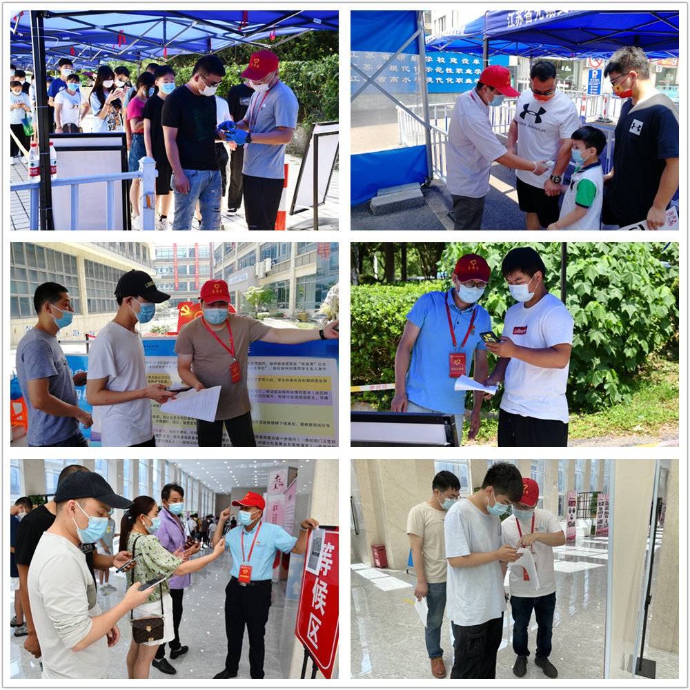 在烈日下,党员志愿者的衣服早就被汗水浸的湿漉漉,皮肤晒的通红,他们依然坚守自己的岗位,坚持战斗在防疫一线,让红色堡垒在一线矗立,让党旗在一线飘扬,让党徽在一线闪亮,充分发挥党员先锋模范作用,把党史学习教育成果转化为疫情防控和服务群众的强大动力,全力打赢疫情防控狙击战。