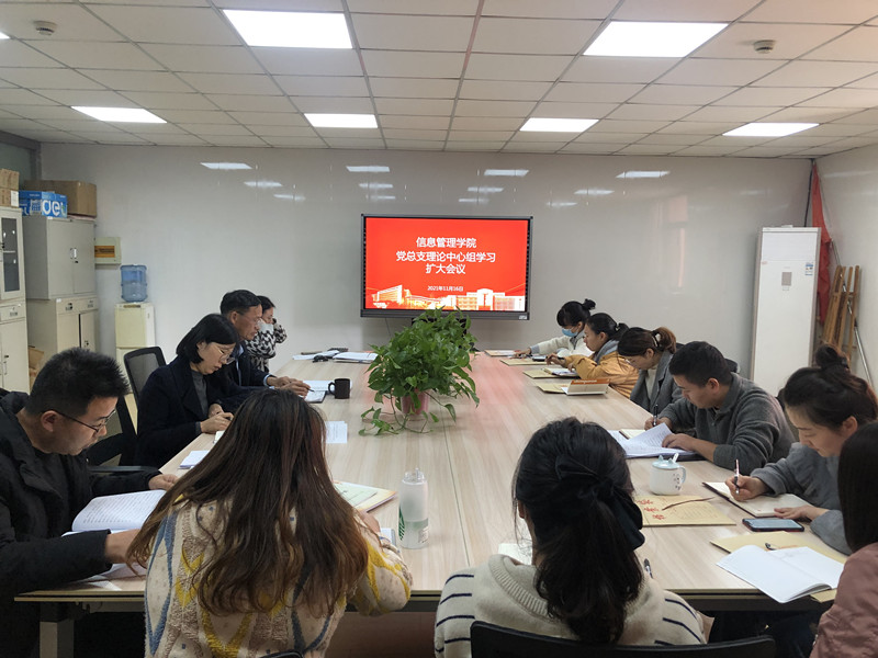 11月12日下午,信息管理学院召开党总支理论中心组学习扩大会,专题学习《中国共产党第十九届中央委员会第六次全体会议公报》。学院全体党员及教师参加了会议,会议由学院院长郑智飞主持。