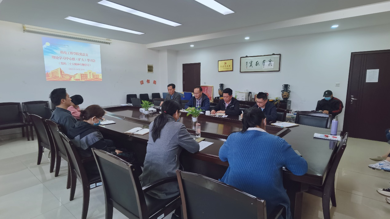 10月28日下午,机电工程学院举行理论学习中心组(扩大)学习会,围绕学习贯彻党的二十大精神开展交流研讨,进一步把学习宣传贯彻党的二十大精神引向深入。校党委委员、副校长耿兴华出席学习会。会议由党总支书记徐小国主持,全体教职员工参加会议。