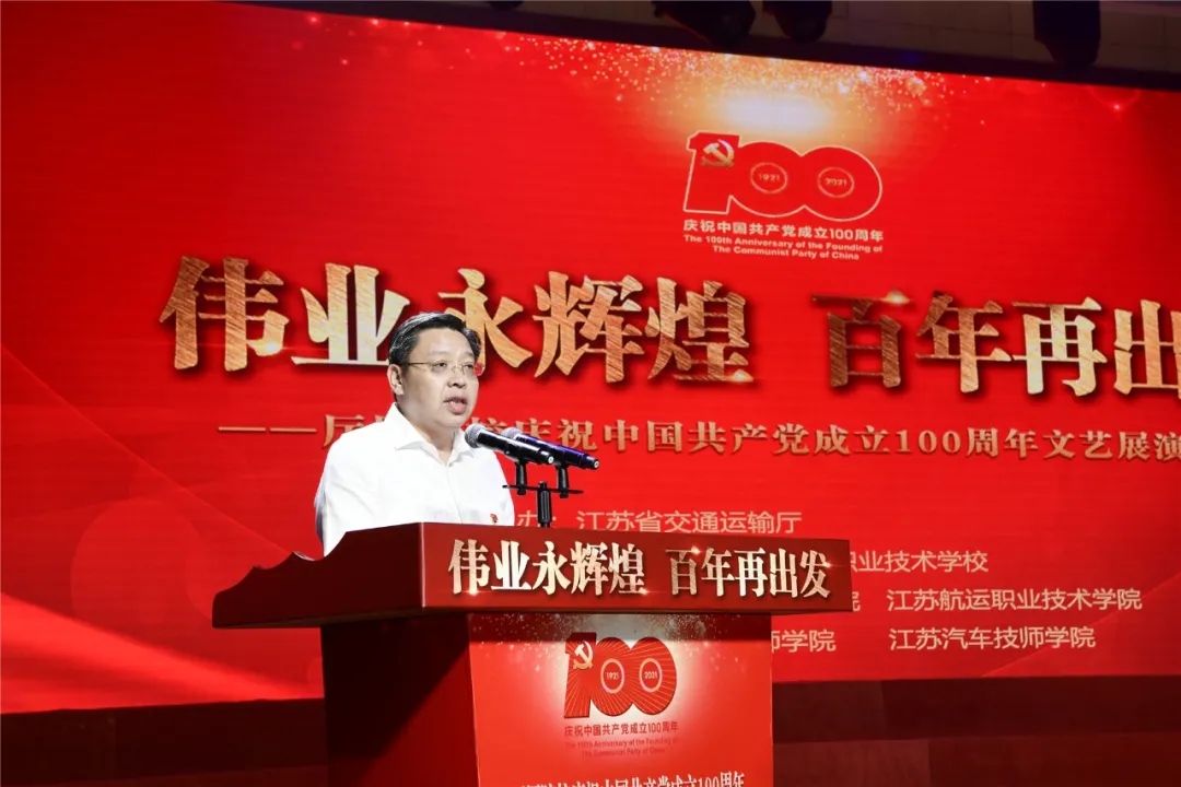 百年伟业、峥嵘岁月;红色梦想,砥砺前行。在全国上下喜迎中国共产党成立100周年之际,在党旗高高飘扬之时,来自全省交通运输厅厅属院校师生齐聚省无锡交校,庆祝中国共产党成立100周年。6月25日,由江苏省交通运输厅主办,开云手机客户端承办的“伟业永辉煌 百年再出发”厅属院校庆祝中国共产党成立100周年文艺展演在学校大礼堂成功举行。江苏省交通运输厅副厅长金凌、江苏省交通运输厅政治处处长范健、江苏省交通运输厅副处级干部李进莅临演出现场。南通航运职业技术学院党委书记袁卫国、江苏省交通技师学院党委书记曾正德、江苏汽车技师学院院长董刚、南京交通职业技术学院副院长王道峰、开云手机客户端党委书记、校长李虎,来自厅属院校的700余名师生代表参加活动。