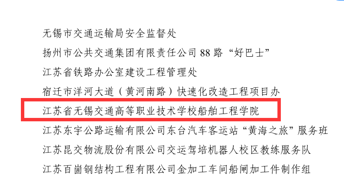 学生在专业技能竞赛中成果显著,4000多名毕业生成长为核心技术骨干、省劳动模范、省青年技术能手;建成了省品牌示范专业、省现代化专业群、省高水平现代化实训基地。学院教师获评省级优秀教科研团队,拥有江苏省333高层次人才培养对象1名,省级教学名师2名,获国家级教学成果奖二等奖等荣誉。《走进焊接》获首届全国优秀教材一等奖,被全国31个省市自治区的相关职业院校广泛选用,在全国范围内影响深远。建成省、市科普教育基地“船文化中心”,接待来自省内外参观学习者累计20000人次。牵头制定了江苏省中等职业教育船舶制造与修理专业指导性人才培养方案及课程标准,参与国家船舶类高职专业教学标准的制定。学院相关成果获得“二十家中央媒体看江苏交通”专题报道,并先后被学习强国、中国交通报、无锡教育电视台等多家媒体报道,产生了很好的社会影响。