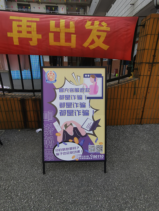 宣讲会上,首先刘潭派出所教导员针对辖区内学校师生一个阶段以来受到网络诈骗的情况进行了通报和梳理,阐明加强校园反诈宣传教育的重要性和紧迫性,警方将采取更为积极有效的宣传教育活动来提高广大师生的反诈防范意识和能力。其次,张镇杰警官主要针对网络诈骗,通过解读一个个生动鲜活、触目惊心的网络诈骗案例,联系实际,以案释法,以法论事,并从网络特点、诈骗手段、心理状态、法制观念等方面进行了剖析,运用文字、图片、短视频、问答互动、现场观看反诈案例展板,警示学生要遵纪守法,不贪不念,教育大家要充分认识网络诈骗严重的社会危害性。