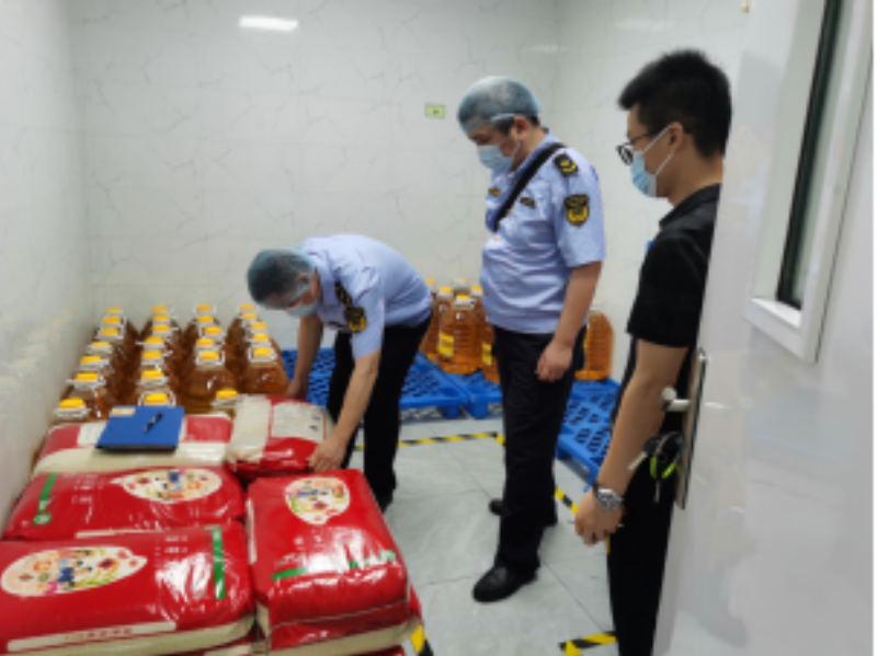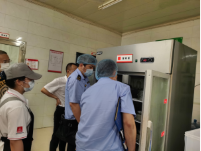 2023年6月20日,滨湖区市场监督管理局荣巷分局对学校食堂进行检查。此次检查重点对食堂食品库存、进货查验、就餐环境、餐饮具清洗消毒、设施设备维护、剩饭菜及留样处理、从业人员健康管理等方面进行全面检查,对发现的问题现场提出整改意见,要求食堂负责人及时消除风险隐患,确保广大师生的食品安全。