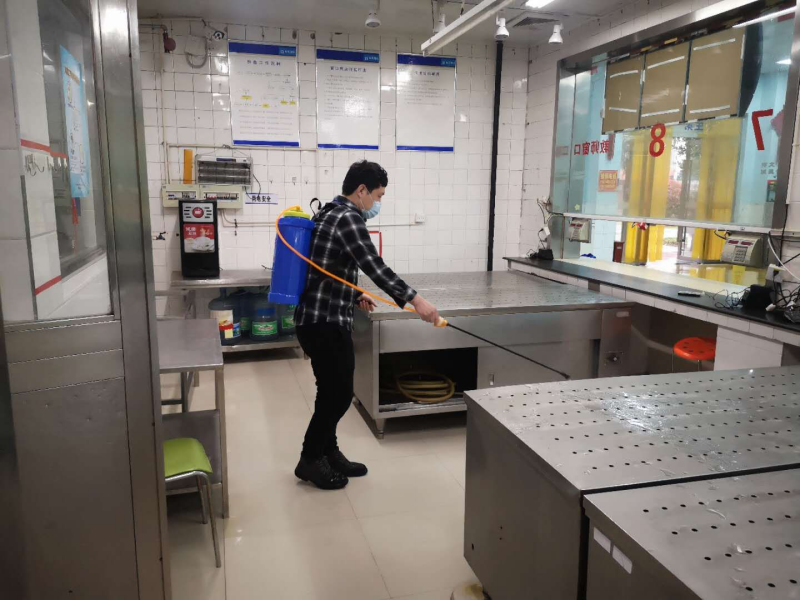 为进一步做好新型冠状病毒肺炎疫情防控工作,切实保障全校师生员工的身体健康和生命安全,确保2020年春季开学工作的顺利进行,在校党委书记李虎的带领下,学生工作处、工会、后勤管理处等部门负责人于2020年4月14日对食堂超市进行开学前准备工作的全面检查。校领导重点对学校食堂就餐场所、操作间环境卫生、设施设备消毒、原料储存、餐用具消毒等准备情况进行检查。最后,校党委书记李虎对学校食堂超市提出四点要求:一要切实做好从业人员健康、个人防护和培训宣传等工作;二要把餐厅、操作间环境、设施设备、原料索证索票及储存、餐用具消毒等关键环节检查落实工作;三要建立健全食品安全各项规章制度和各种记录;四要严格管控供餐配送。配送食品要有包装或使用密闭容器盛放,配送食品前,要对配送工具、周转箱、容器等设备进行全面清洁消毒,全力保障学校广大师生舌尖上的安全。