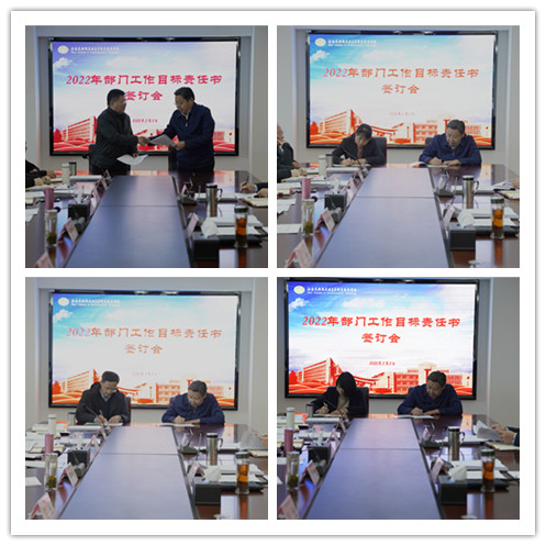会上,李书记与各处室、院部主要负责人分别签订2022年部门工作目标责任书,全体中层干部参加了会议。