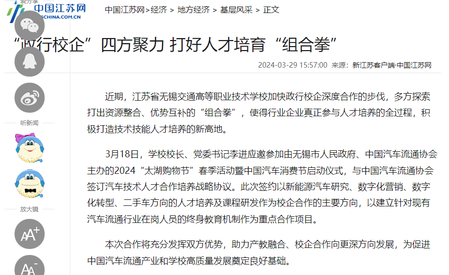 江苏无锡:“政行校企”四方聚力 打好人才培育“组合拳”