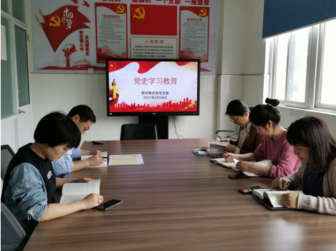 2021年4月28日下午,数学教研室党支部在基础教学部会议室组织进行了党史学习教育,本次学习以读书会的形式开展。
