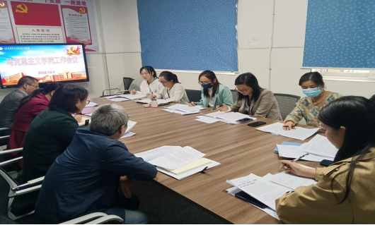 2022年10月9日下午,马克思主义学院在部门会议室召开工作会议。党委副书记、马克思主义学院院长朱雨兰出席会议,全体马克思主义学院教师参加会议,会议由基础教学部党总支副书记、马克思主义学院副院长杨凤琴主持。